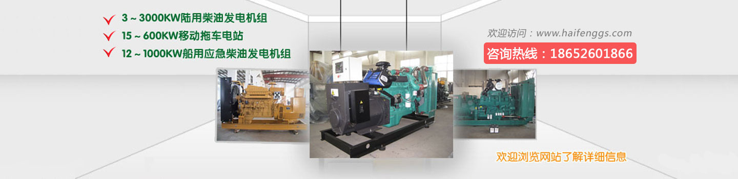 公司主營產品:3~3000KW陸用柴油發電機組,15~600KW移動拖車電站,12~1000KW船用應急柴油發電機組,各種靜音型、中高壓、多機并聯、燃氣等特種機組以及進口系列柴油發電機組,可滿足不同客戶的一切電力需求,還可滿足用戶不同電壓、不同頻率的要求。